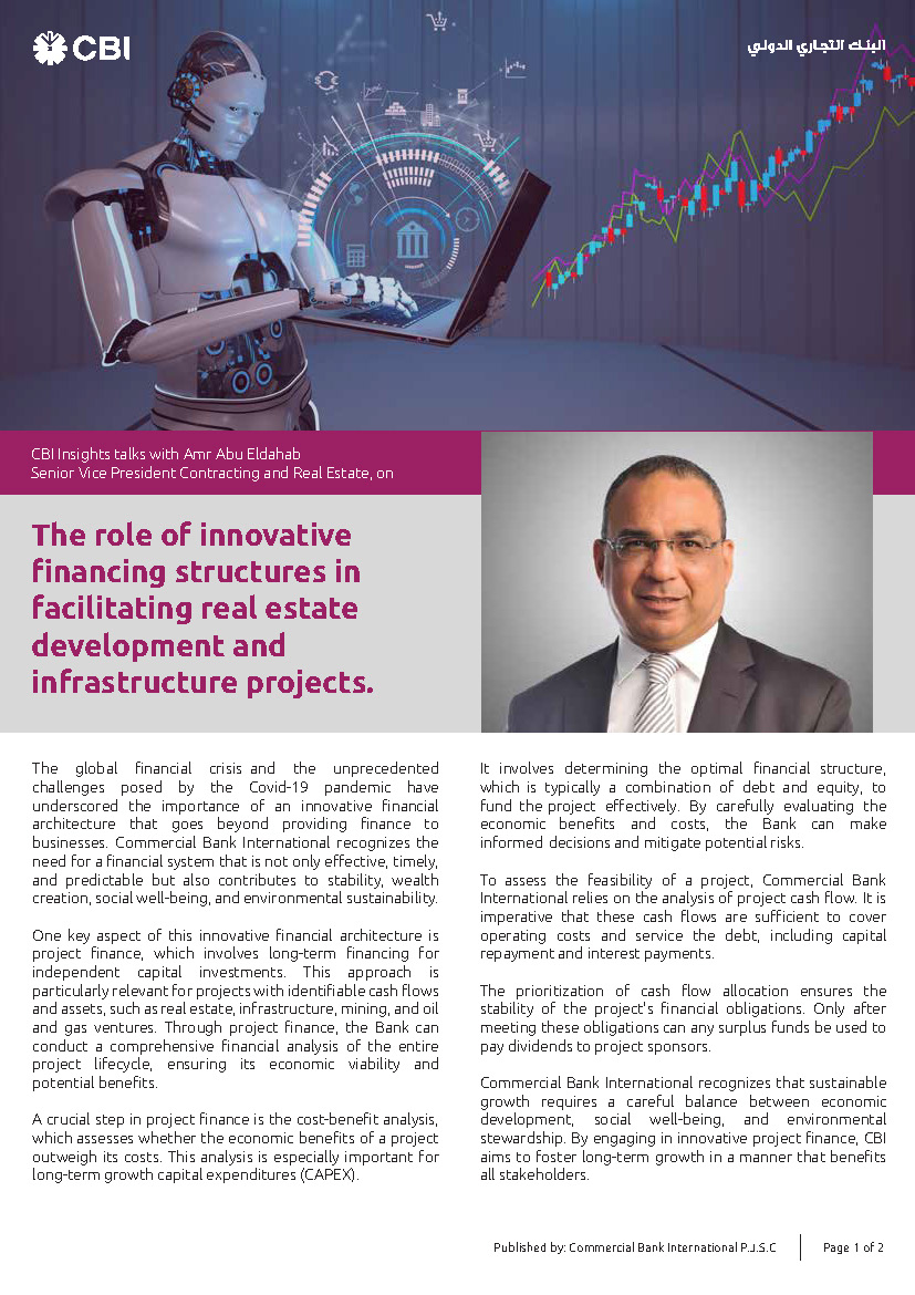Commercial Bank International recognises that sustainable growth requires a careful balance between economic development, social well-being, and environmental stewardship. By engaging in innovative project finance, CBI aims to foster long-term growth in a manner that benefits all stakeholders.